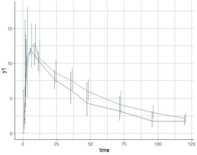 In order to dodge the error bars, it is possible to edit the corresponding layer of the ggplot object p. Note that to use ggplot functions, it is necessary to load the ggplot2 package in addition to the lixoftConnectors.