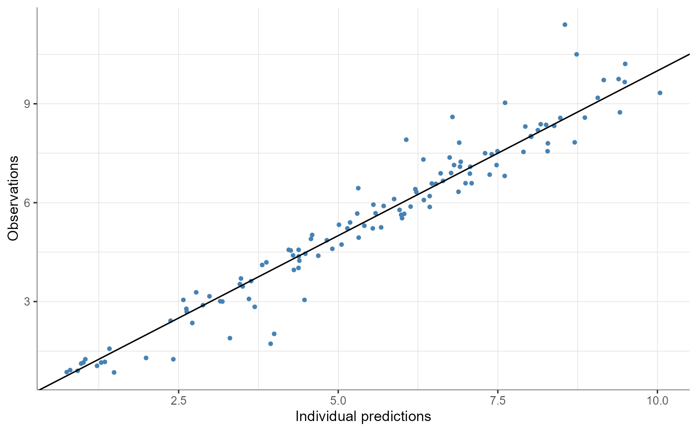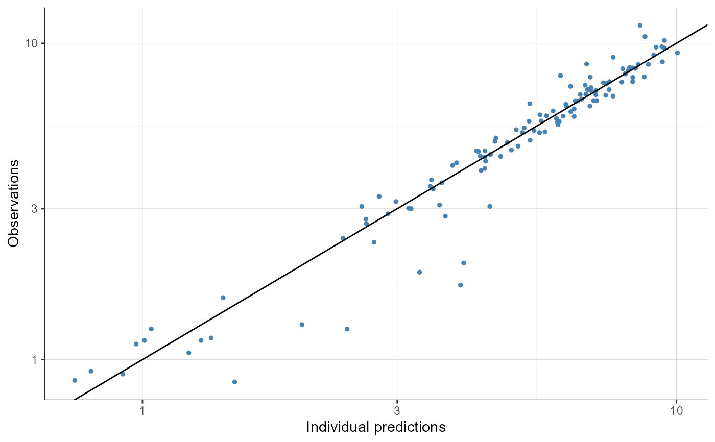 plotObservationsVsPredictions(settings = list(ylog = TRUE, xlog = TRUE))