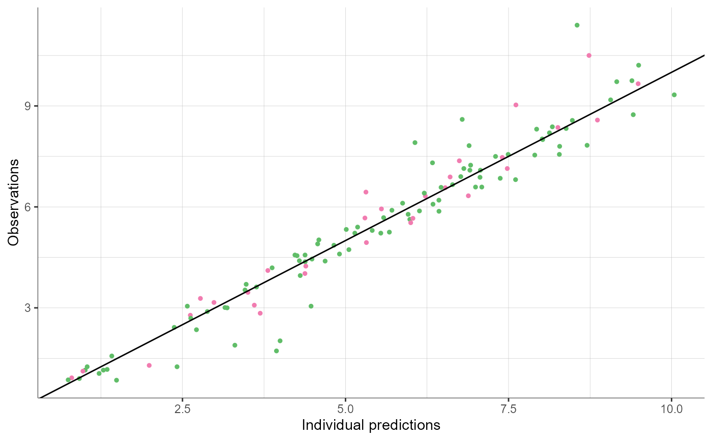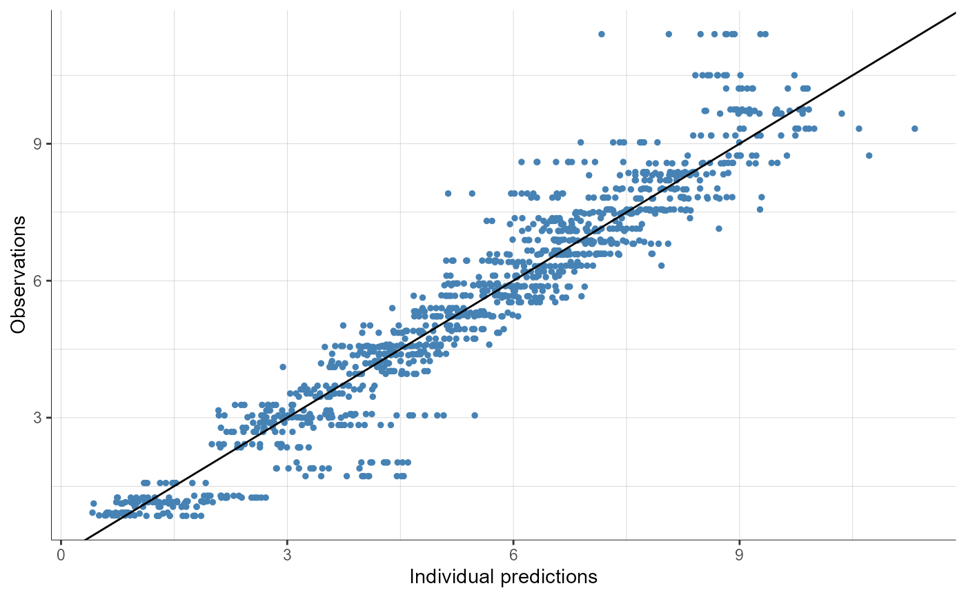 plotObservationsVsPredictions(settings = list(indivEstimate = "mean", spline = TRUE))