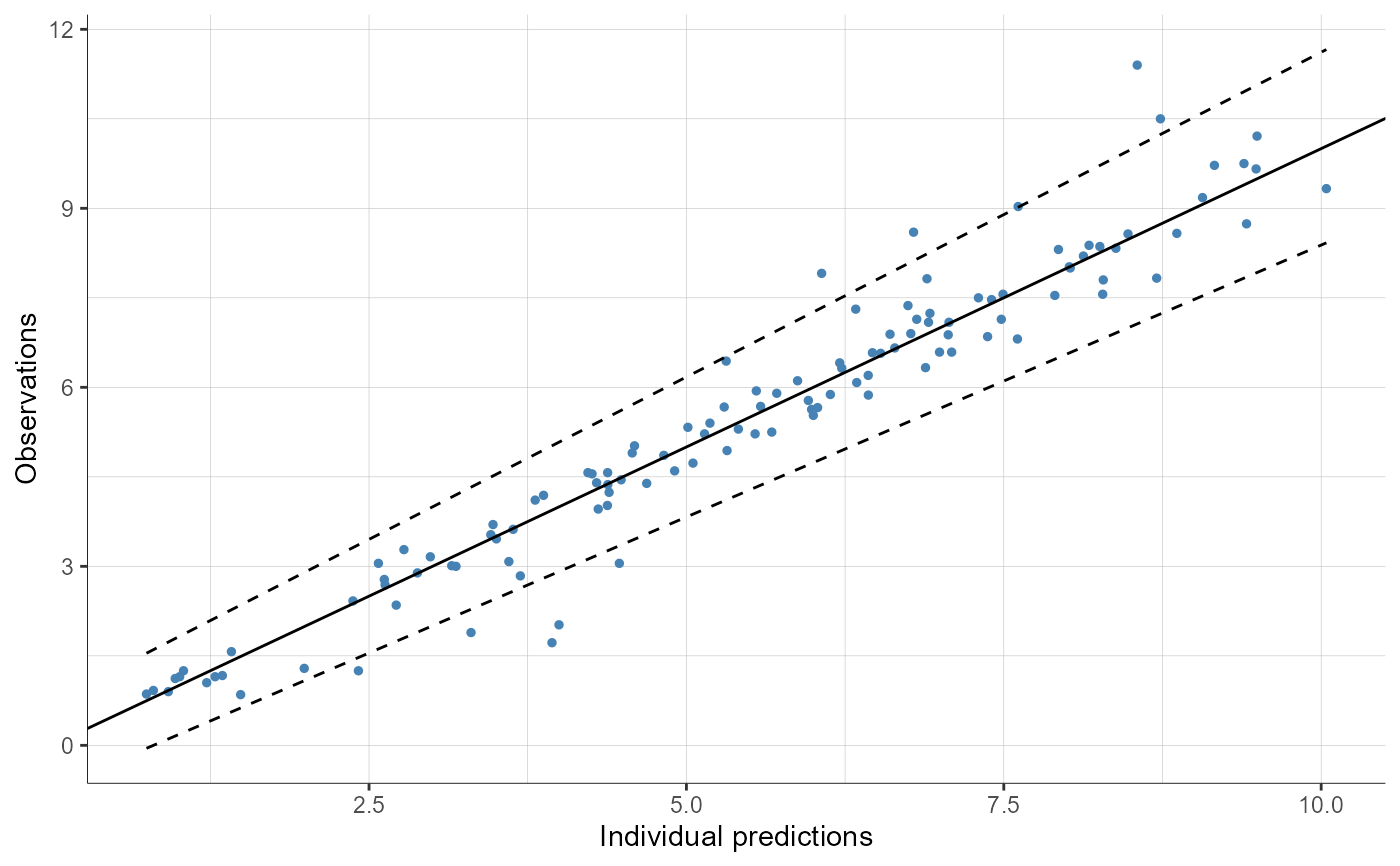 plotObservationsVsPredictions(settings = list(indivEstimate = "mode", predInterval = TRUE))
