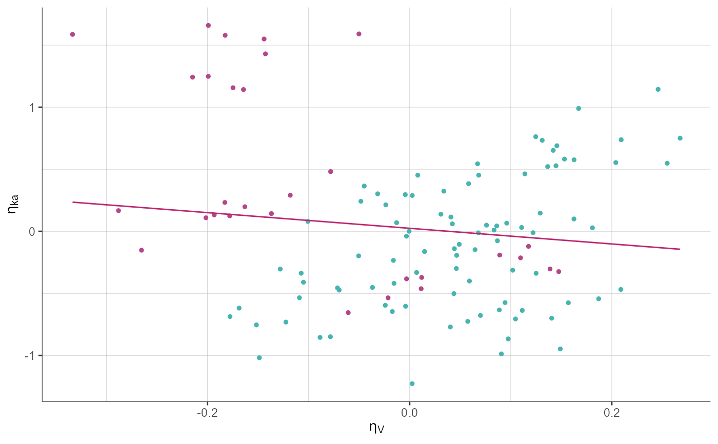 plotRandomEffectsCorrelation(settings = list(indivEstimate = "mean"))