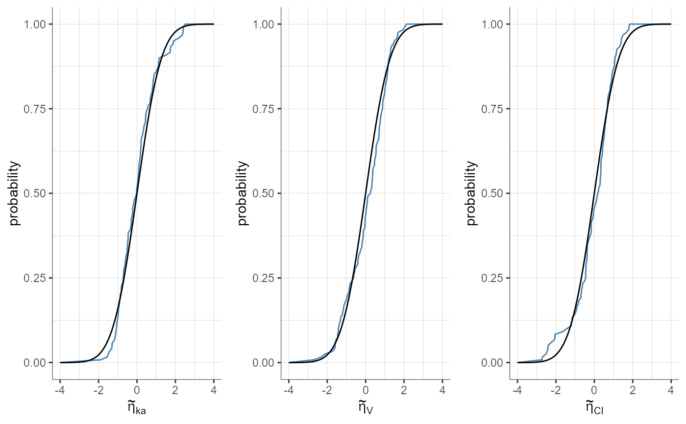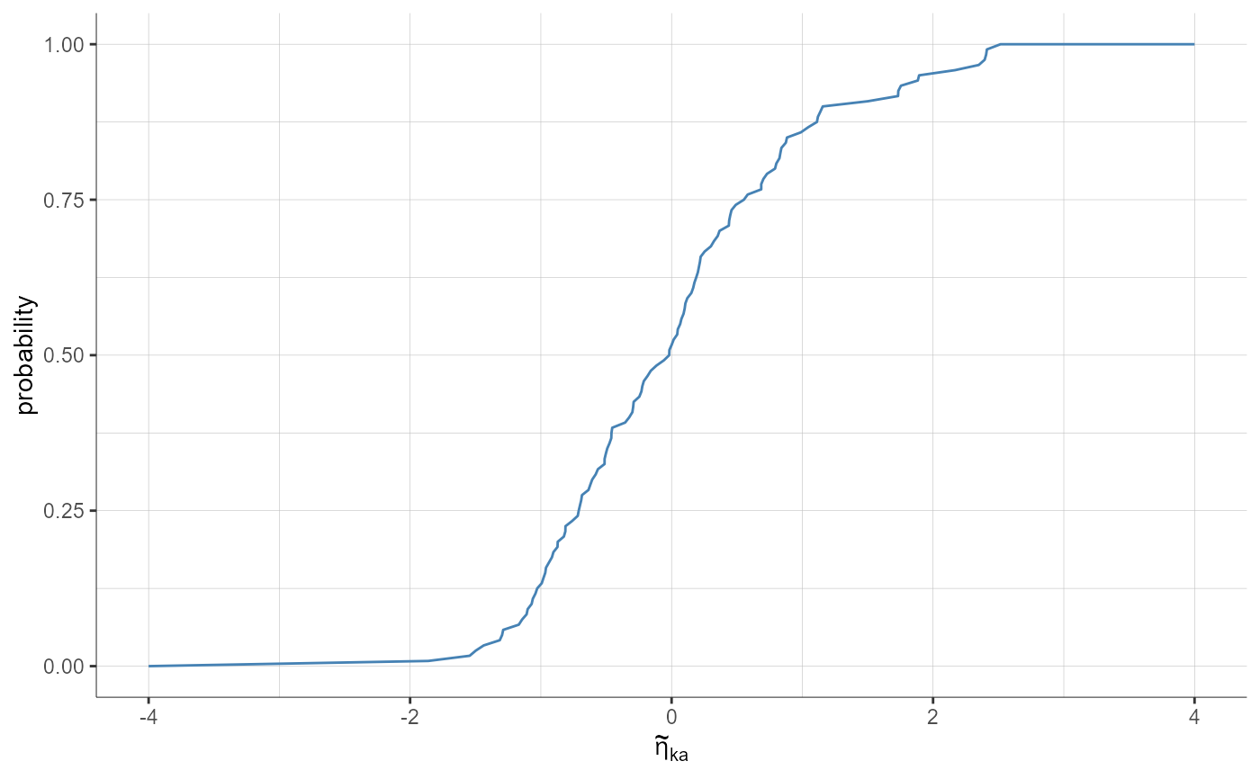 plotStandardizedRandomEffectsDistribution(parameters = "ka", plot = "cdf",